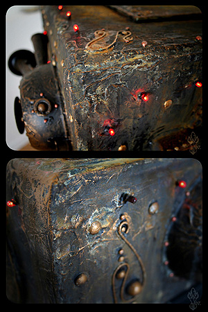 | ValK | Petits détails mais grande vision ! Je regrette beaucoup de n'avoir pas vu la boîte une fois finie... et pour être sincère, je regrette surtout de n'avoir pas assisté à l'alchime qui a transformé la peinture à base de fer en chatoyante rouille... Tu es magicienne aux multiples faces toi aussi ! |